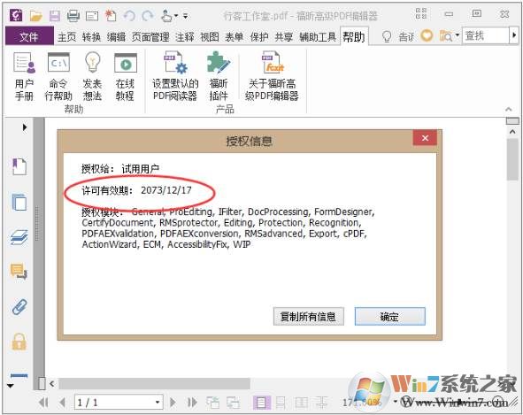 福昕PDF编辑器企业版 v9.1.0绿色破解版,证可有效期至2073年,永久激活免费使用。