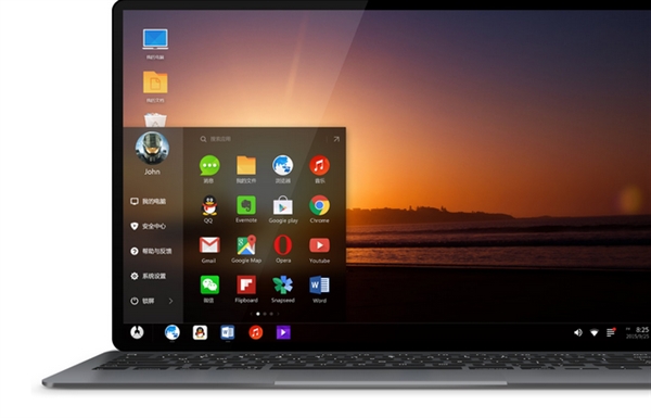 配备了经典的开始菜单,大致是windows 7的风格,而且支持全屏切换,可以作为已安装应用、系统设置的入口。