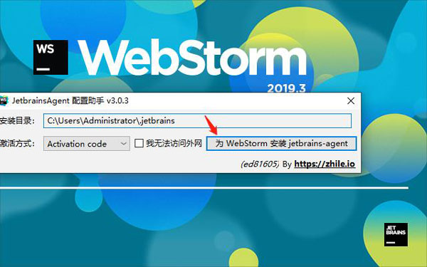 11、点击【为WebStorm 安装jetbrains-agent】。