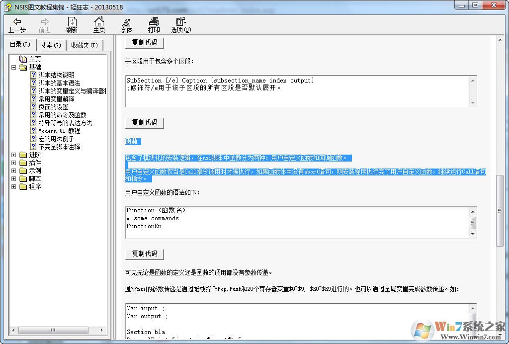 NSIS图文教程集锦(轻狂志)是一款CHM格式的电子图书,详细介绍了nsis脚本的基础知识,进阶知识、插件使用方法、以及脚本实例,能够帮助用户更好的学习软件或游戏的封装方式,适合新手入门学习的教程。