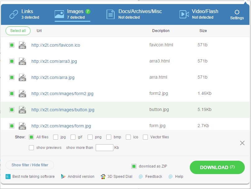 -甚至网页内容。其他过滤器只能选择视频或图像。预览功能显示图像的正确内容!可以单独下载文件或同时下载一些文件。