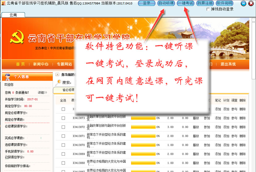 云南干部在线学习学院是一款专门为云南省干部打造的学习辅助工具,让你可以在电脑上直接通过网上进行授课学习,帮助用户一键听课,自动换课,支持最小化听课,加速听课,支持一键考试,支持掉线自动登录。有了他,从此学习不再有负担,让大家更加轻松学习……
