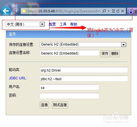 它会启动浏览器,出现下面的界面。默认的是英文界面,我们选择“中文(简体)”,界面就变了。然后点击“连接”。