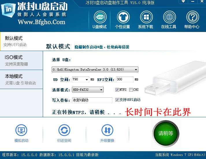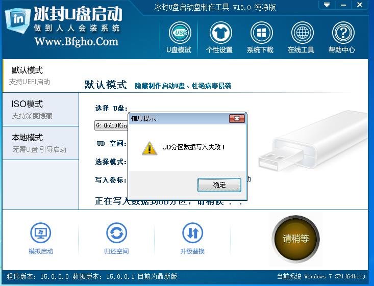 冰封u盘启动制作失败处理流程: