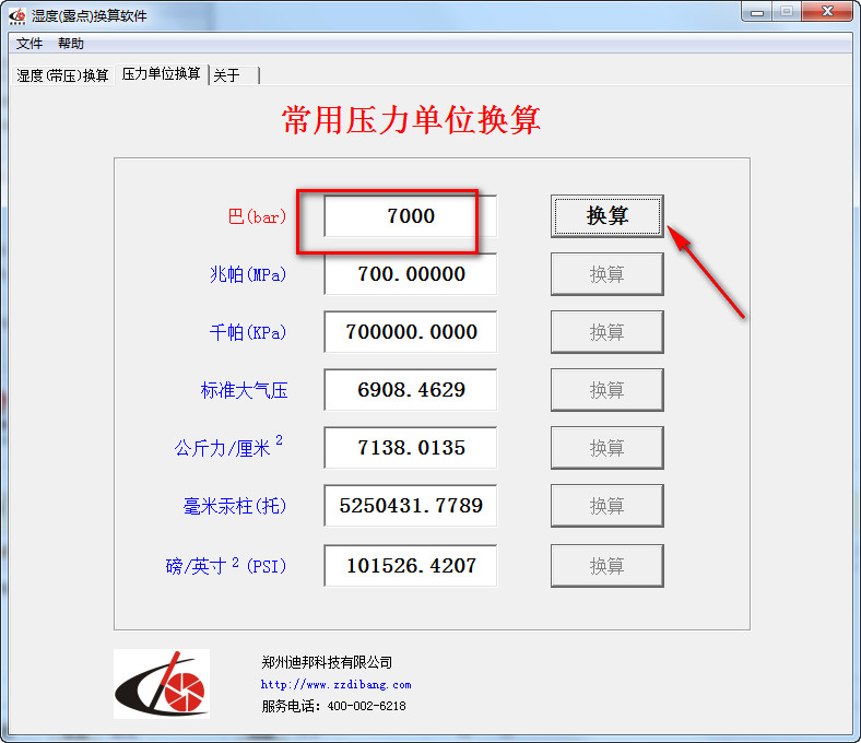附带压力单位换算
