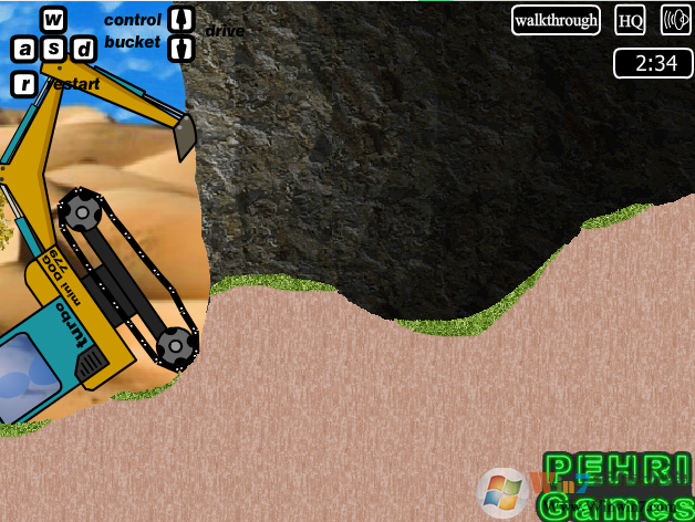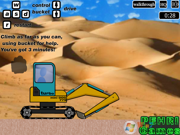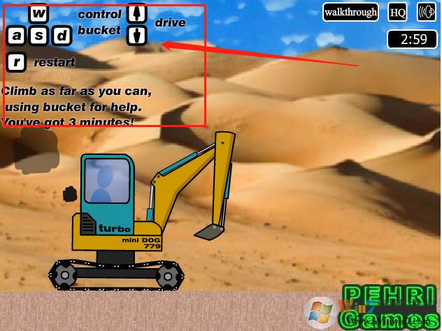 4、利用W键将挖掘机的铲子抬高再下放进行挖掘,可不断往前进。
