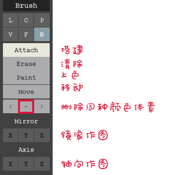 绘图工具是简单和容易。你可以选择多种类型的画笔绘制各种形状更容易附着,删除,移动或油漆的体素,以及插入现有的模式或其他基本对象。