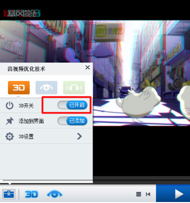 如果需要将电影转换至“3D”模式,只需要点击“3D”右侧的开关,将其开启即可。