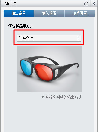 在打开的“3D设置”窗口中,我们可以对“显示方式”进行设置,根据自己所佩戴的3D眼镜类型,从“输出设置 显示方式”下拉列表中选择合适的类型。