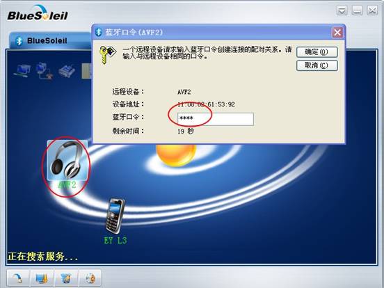 第三步:双击耳机图标,如下图(输入蓝牙口令0000),点确定;
