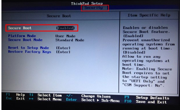 3.secure Boot由Enable(启用)设置为disenabled(禁用):