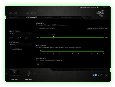 RazerSynapse雷云早已升級。如今,你的外接设备能够 相互之间通信了。按着Razer键盘上的某一功能键,就可以临时性更改Razer电脑鼠标的敏感度;也可应用鼠标中键(配备会体现这种更改的可自定灯光效果)快速更改电脑键盘环境变量。你要可在电脑鼠标上建立宏,随后在键盘上应用,或是仅仅将其储存到云空间便于日后应用。