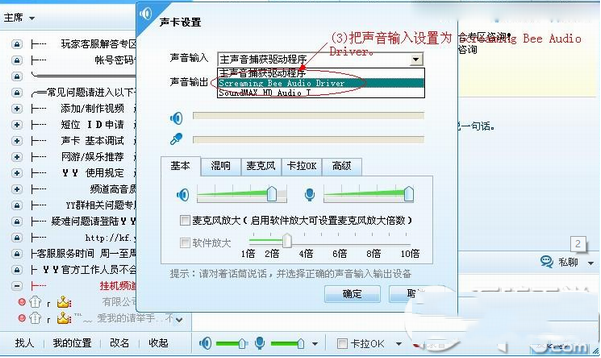 打开YY,把声音输入设置为screaming bee audio driver即可
