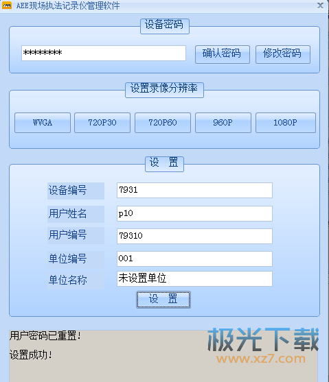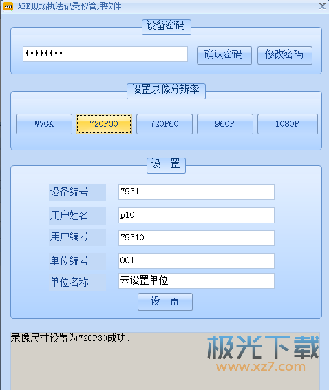 aee格式用什么观看?对于执法部门需要进行执法记录,你可以在连接AEE执法记录仪后对设备进行设置,如:修改设备密码、设置录像分辨率以及设置设备的编号、用户名、用户编号、单位编号以及单位名称,还可以管理记录仪中的视频执法记录。