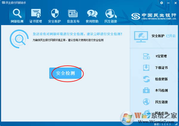 启动网银助手后,先进行全面检测;在登录个人网上银行的时候,银行系统经常会要求你安装安全控件、安全证书的之类的安全辅助的东西。