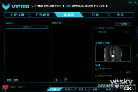 宏编辑页面,V25设置了多款主流游戏的宏命令,游戏里面应该已经预设好了宏命令,可以直接调出使用。
