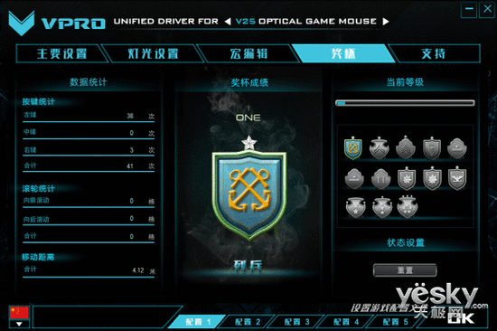 奖杯页面中,能够统计鼠标的按键次数及移动距离合计等。