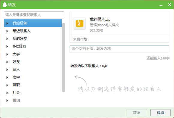 方式二:在WinZip中选择需要分享的文件,然后右键> 发送所选文件到>发送给QQ好友。