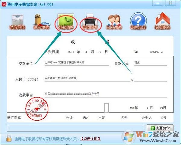 4、编辑好收据内容后您可以导出BMP图片也可以直接打印