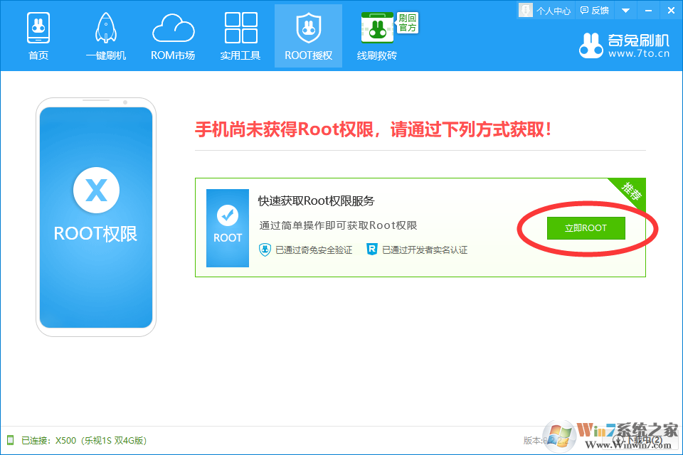 3、点击奇兔刷机->ROOT授权,然后点击【立即ROOT】