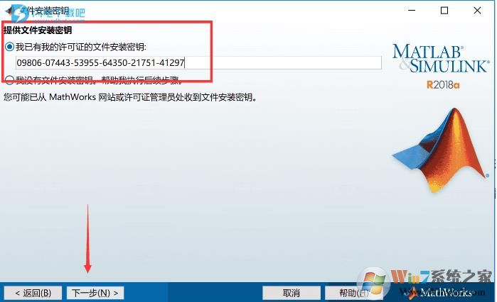 3、允许用户协议,选择“是”点击下一步,选择“我已有我的许可证的文件安装秘钥”,输入序列号“09806-07443-53955-64350-21751-41297”