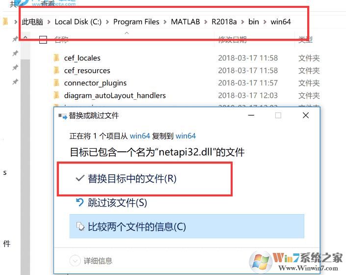 7.将“crack”文件夹下面MATLAB Production Server里面的win64文件夹里三个破解动态库文件复制替换 到MATLAB R2017b 安装目录下面的“D:\Program Files (x86)\bin\win64”文件覆盖即可完成破解。