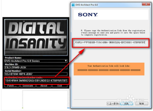 安装完毕后,运行注册机,在Product Name项中选择“DVD Architect Pro 6.0”,然后点击Patch,选择安装目录打上补丁,默认安装目录为C:\Program Files (x86)\Sony\DVD Architect Pro 6.0