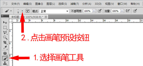1.选择画笔工具,如下图: