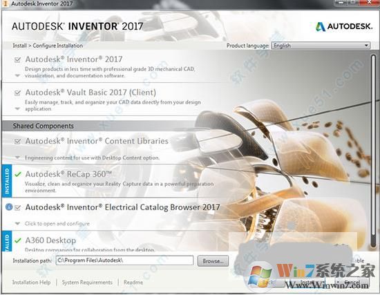 1、首先安装原版程序,下载本站下载的软件之后安装Autodesk Inventor 2017中文版;
