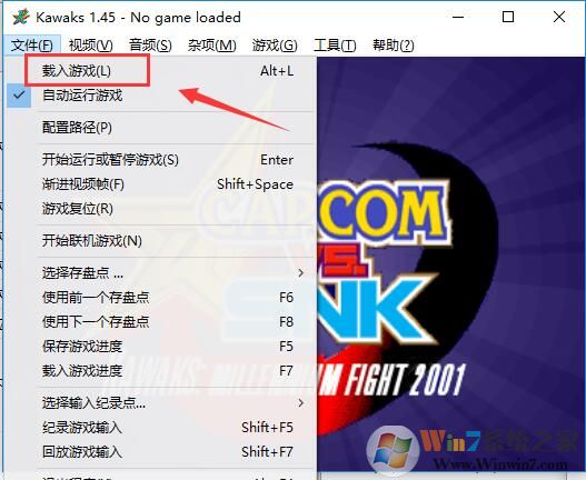 1、双击打开WinKawaks.exe,点击左上角的“文件”,再下来菜单中选择“载入游戏”