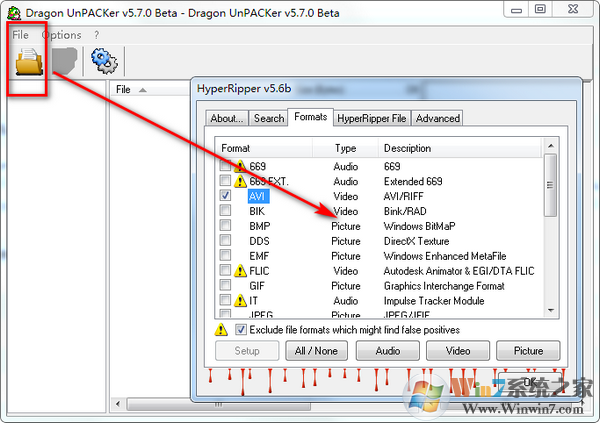二、导入游戏后打开hyperripper功能使用FORMATS功能对游戏的图片、视频、音频进行打包。