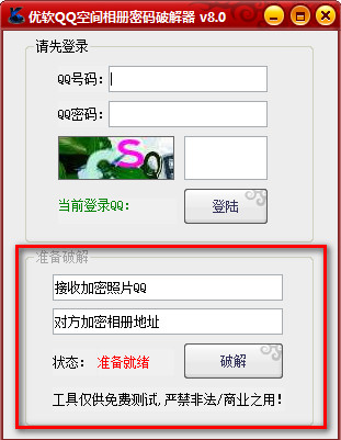优软QQ空间相册密码破解器是一款能够破解QQ空间加密相册的软件,操作简单,成功率高,登录QQ将对方空间相册的地址复制到软件中,点击破解即可,赶紧下载,查看男神或者女神的相册吧!