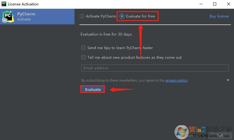 下载并安装软件后,点击 “Evaluate for free” 先免费试用,然后点击 “Evaluate”