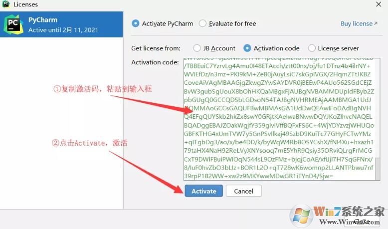 复制“补丁key.txt”中的所有内容粘贴到激活码输入框。然后,点击Activate。