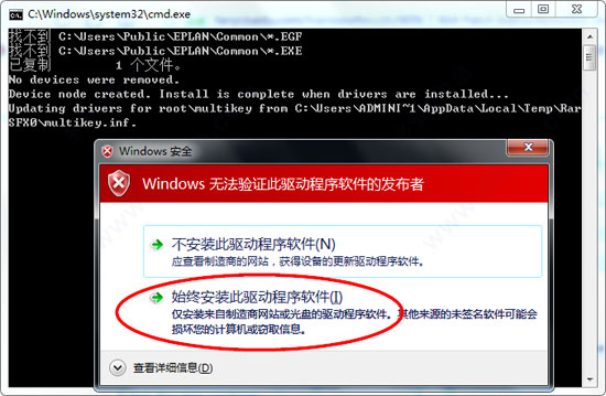 6、然后运行“EPLAN 2.1-27 X64 crack.exe”,弹出窗口选择安装驱动