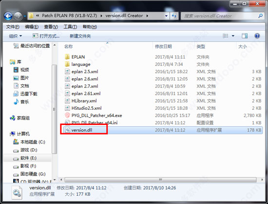 7、打开“version.dll Creatorl”文件夹,将破解补丁“version.dll”复制到安装目录下,默认目录为C:\Program Files\EPLAN\Platform\2.7.3\Bin,然后重启计算机即可
