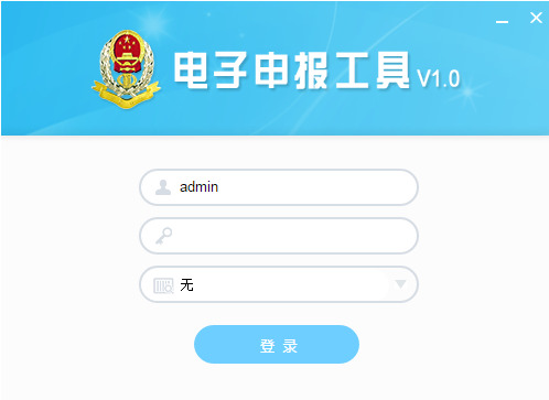 系统安装完毕后,点击“开始”菜单中的“程序”,找到“电子申报软件”,进入后点击“电子申报工具V1.0”,则打开了程序的登录界面,如下图所示: