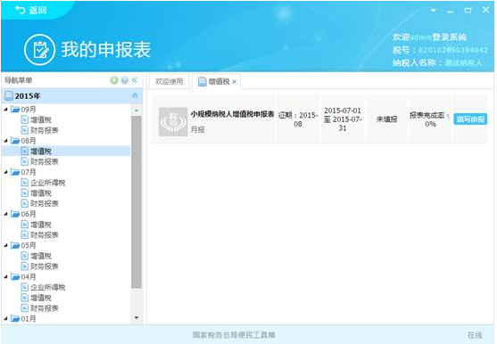选择对应的申报表,月报、季报、年报可以单独进行申报。