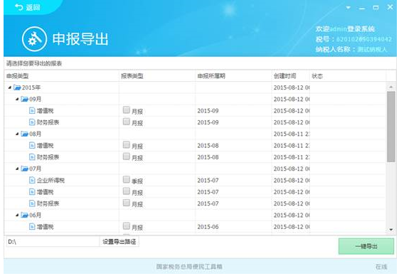 默认导出放在D盘,可以选择其他的导出路径,设置完成点击一键导出,报表即导出完成。