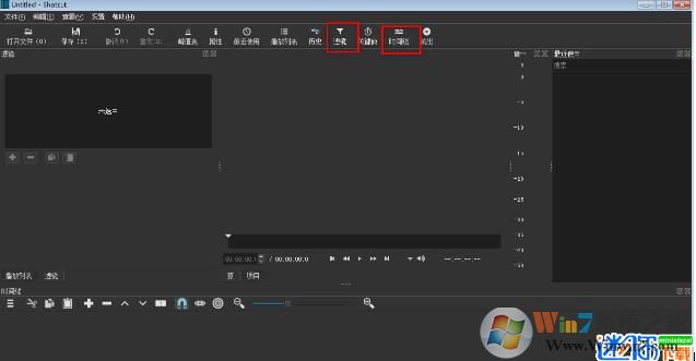 1、安装后,运行软件,如果你需要进行视频剪辑,最常用的莫过于【滤镜】和【时间线】了。