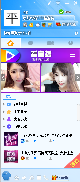 1、登陆后大家就可以看到咋们嘟嘟的主窗口界面了。头像下的搜索栏,可以快捷搜索房间号或者好友、嘟嘟群,方便进入。