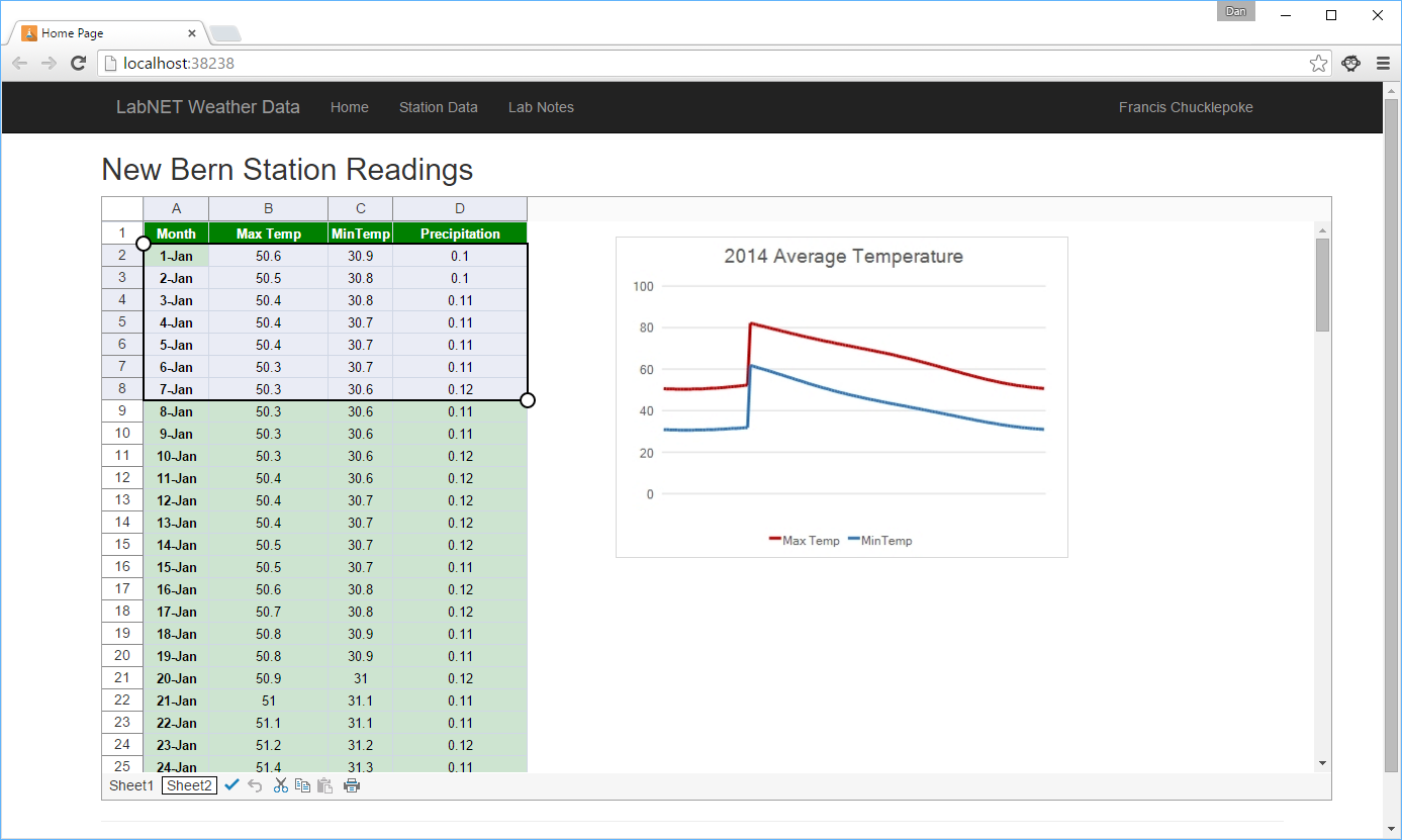 Spread的WEB程序将支持微软Edge和谷歌Chrome上面的触摸交互。 如下图,请注意选择单元格区域的触屏手柄。