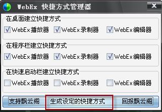 WebEx 绿色版可以创建三个快捷方式,包括 player、recorder、editor。但这并不意味着有3个独立程序:所谓的播放、录制、编辑其实对应同一个主程序,只是运行参数不同: