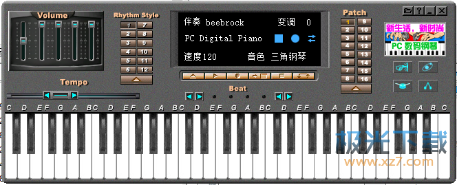 PC数码钢琴Button(PC Digital Piano)是一款电脑钢琴软件,它为喜欢钢琴的你,不需要重金购买钢琴就可以在电脑上练习、学习钢琴演奏,它是一款非常好用的钢琴模拟器,提供了多种钢琴的共鞥能,包括音量控制、节奏类型选择、显示屏、音色选择、启动同步、拍速调节器、变调等应用操作,是你练习音乐的最佳选择。