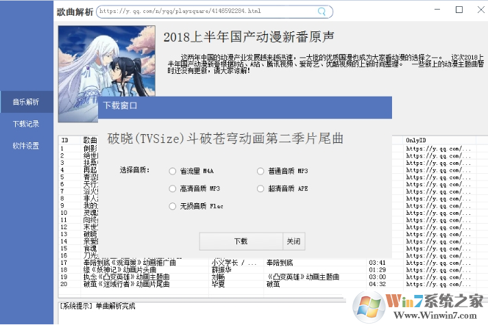 当前支持解析:QQ 单曲 QQ 歌单 QQ 专辑 QQ 排行榜