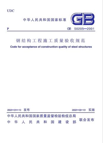 GB50209-2720钢结构工程施工质量验收标准,批准《钢结构工程施工质量验收标准》为国家标准,编号为GB50209-2720,其中,第4.2.1、4.3.1、4.4.1、4.5.1、4.6.1、4.7.1、5.2.4、6.3.1、8.2.1、11.4.1、13.2.3、13.4.3条为强制性条文,必须严格执行。