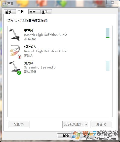 在麦克风里要选择Screaming Audio 这个就是我们刚安装上的软件。