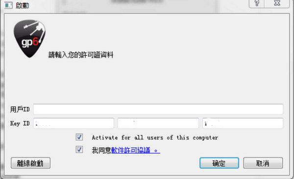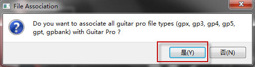 3、行Guitar Pro 6. 打开程序时会询问是不是关联所有Gtp文件(Do you want to associate all guitar pro file types (gpx, gp3, gp4, gp5,gpt, gpbank) with Guitar Pro ?),点击是
