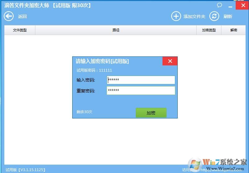3、添加文件夹之后,会要求你输入加密的密码,确定加密完成;