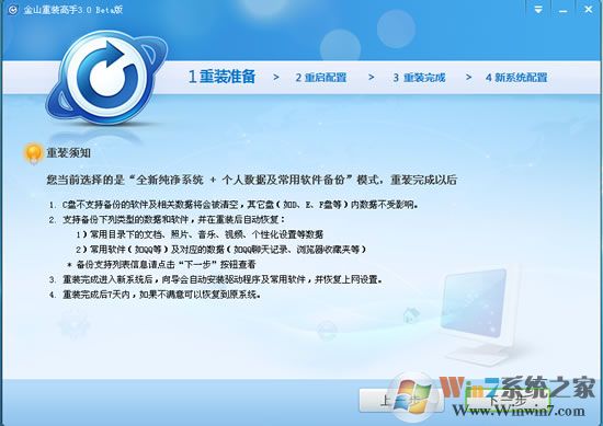 3、若选择备份模式,您可以快速备份QQ、MSN、旺旺等聊天记录,我的文档、桌面、IE收藏夹、邮件等重要个人数据,确保永不丢失,重装完成后可进行还原。 对于不支持备份的项目,需要您自己备份数据